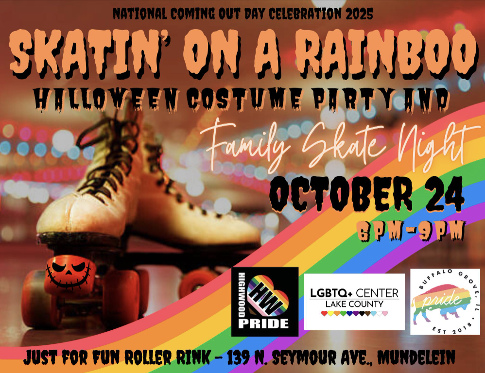 Join BG Pride, Highwood Pride and the LGBTQ+ Center of Lake County for an awesome, family- friendly celebration! Tickets available here and they are FREE! Please invite your friends and family for skating, food, Drag Bingo and much more!